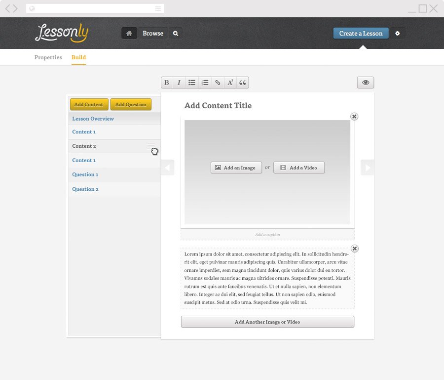 Simple isn't easy. We worked hard to create just the right features and remove as much clutter as possible. The lessonly platform lets companies use a mix of text, photos, quizzes, and video to create courses that make subject matter more approachable and test workers' knowledge. Lessonly is all about employees doing better work.